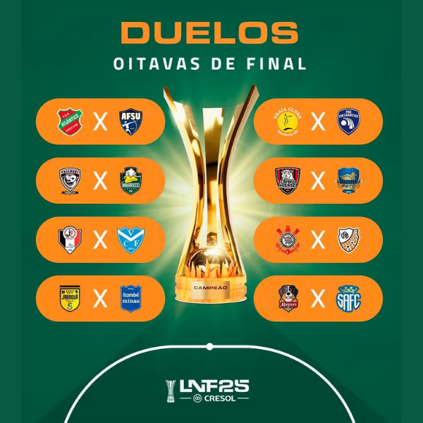 Veja aqui um resumo da última rodada e todos os confrontos das oitavas de final da Liga Nacional de Futsal 2025: